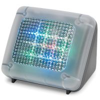 Home security television simulator built-in microchip simulates the scene changes, fades, swells, and color shifts of a TV as perceived from outside using a bright multi-color LED display diffused with an opalescent lens; it consumes only 2% of the power of a normal TV and, in addition to manual control.